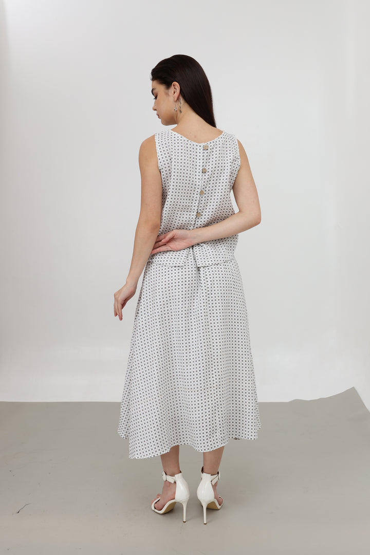 Sản phẩm được may từ vải linen tự nhiên cao cấp, chất liệu nổi bật với khả năng thoáng mát, mềm nhẹ, thấm hút mồ hôi tốt, mang lại cảm giác cực kỳ dễ chịu trong mùa nóng. Bề mặt vải linen có độ thô mịn nhẹ, vừa đủ để tạo nên vẻ đẹp tự nhiên mà không kém phần tinh tế, giúp bạn luôn nổi bật một cách kín đáo.