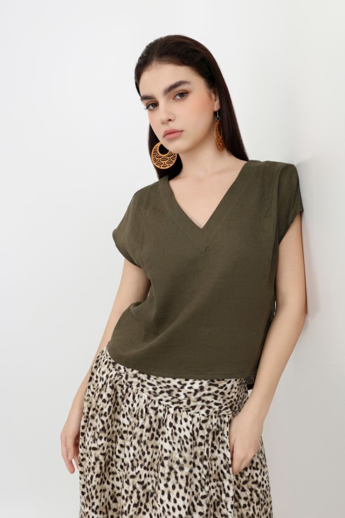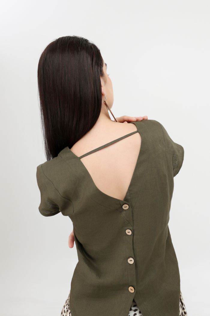 Áo Cổ V Nút Sau Vải Linen – Phong Cách Thanh Lịch 2025