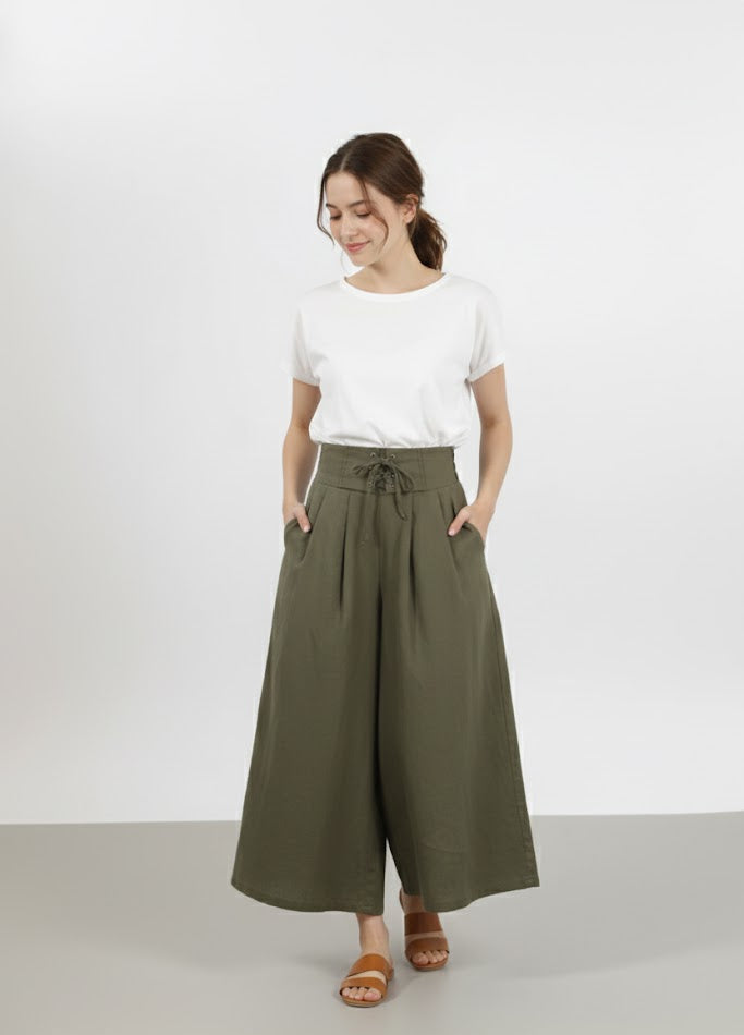 Quần Váy Linen Khuy Thắt Dây – QDV-010 | Phong Cách Tối Giản, Thanh Lịch