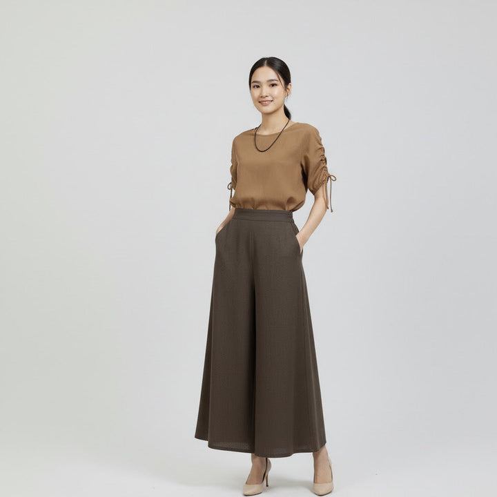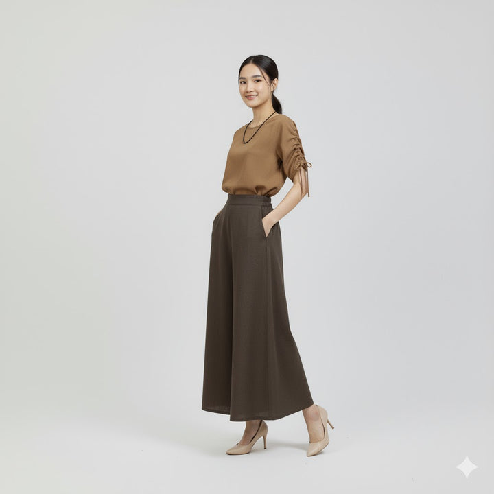 Quần váy nắp túi sau vải linen là item lý tưởng cho những ngày thời tiết nóng ẩm. chất vải linen mát, nhẹ, thấm hút tốt kết hợp cùng thiết kế giả váy hiện đại giúp người mặc vừa nữ tính vừa năng động. chi tiết nắp túi sau tạo điểm nhấn tinh tế, tăng tính ứng dụng. phù hợp để mặc đi làm, đi chơi hay dạo phố – dễ phối với sơ mi, áo kiểu hoặc áo thun. lựa chọn hoàn hảo cho phong cách tối giản và thanh lịch.