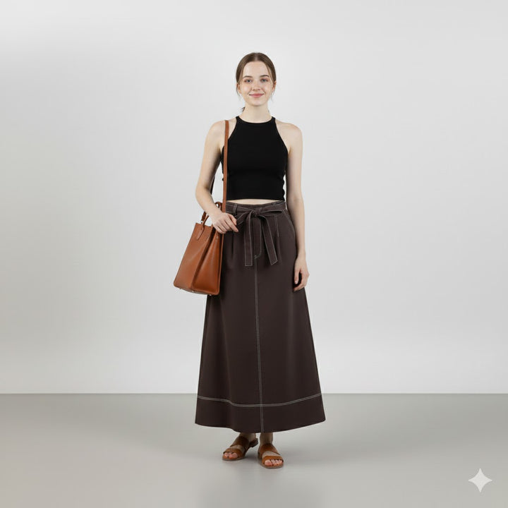 Chân Váy Linen Tưng Premium - 8 Mảnh Lưng V là một thiết kế được ưa chuộng, nổi bật nhờ kỹ thuật cắt may phức tạp (8 mảnh vải rã) và chất liệu cao cấp, tạo nên một form váy vừa tôn dáng vừa thoải mái.