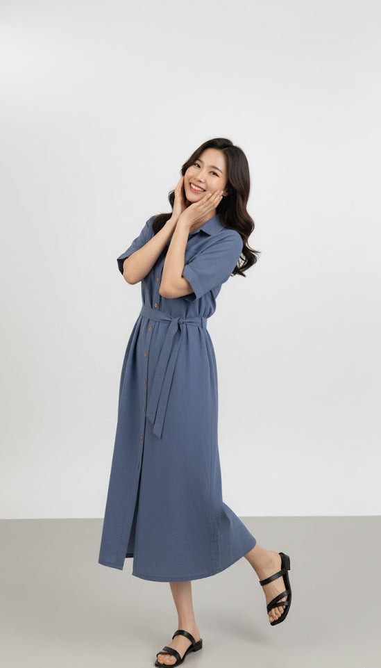 Form đầm được may khéo léo, rơi nhẹ theo cơ thể giúp che khuyết điểm hiệu quả mà vẫn tôn lên vóc dáng. Đầm có thể mặc cùng sandal, túi tote hoặc sneaker trắng để tạo phong cách casual hiện đại.
