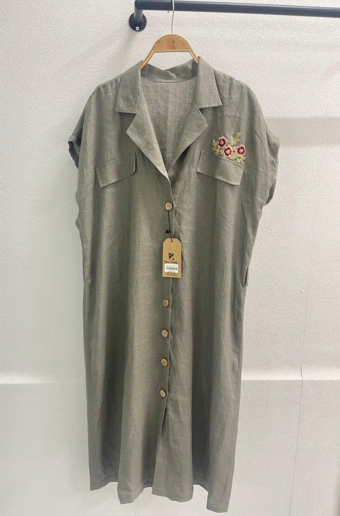 Đầm Linen Tưng Premium - Đầm Cổ Danton Thêu Túi