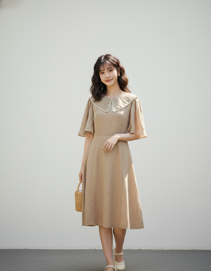 Đầm Linen Tưng Premium - Xòe Xếp Ly Ngực
