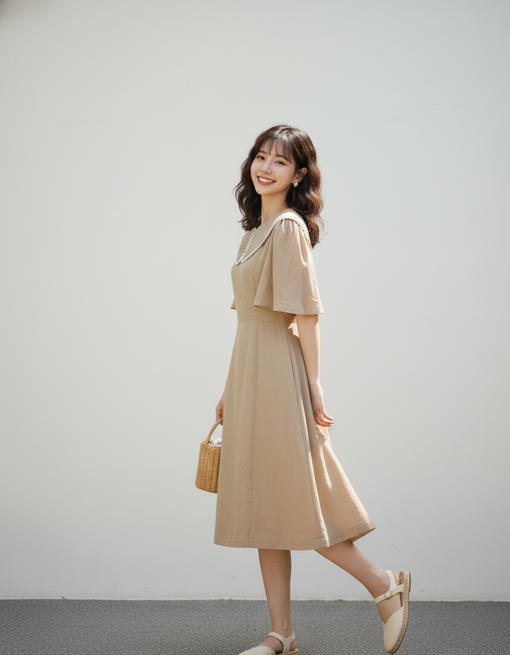 Chất liệu linen cao cấp, mềm mại, thoáng mát, thích hợp mặc cả ngày dài. Đầm dễ phối với giày cao gót, sandal hoặc sneaker, cùng túi xách và phụ kiện đơn giản để hoàn thiện phong cách.