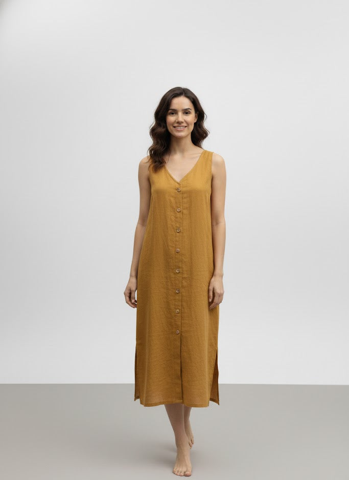 Đầm Linen Tưng Premium - 2V Thắt Nơ mang đến nét đẹp nhẹ nhàng và tinh tế cho những cô nàng yêu thích sự nữ tính. Thiết kế cổ 2V thanh thoát giúp tôn dáng, kết hợp chi tiết thắt nơ duyên dáng ở eo tạo điểm nhấn mềm mại, giúp vòng eo thêm gọn gàng và cuốn hút. Chất liệu linen tưng cao cấp thoáng mát, thấm hút tốt, giữ form dáng tự nhiên, mang lại cảm giác dễ chịu suốt cả ngày. Một lựa chọn hoàn hảo để nàng diện đi làm, hẹn hò hay dạo phố ngày hè.