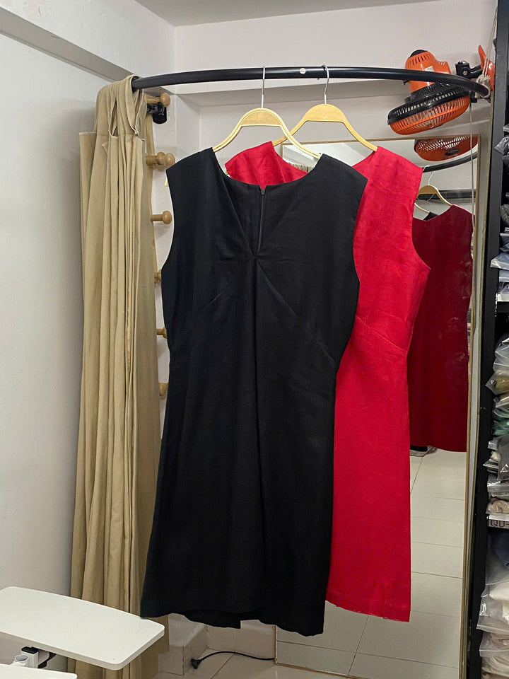 Đầm Linen Tưng Premium - Sát Nách Cổ V