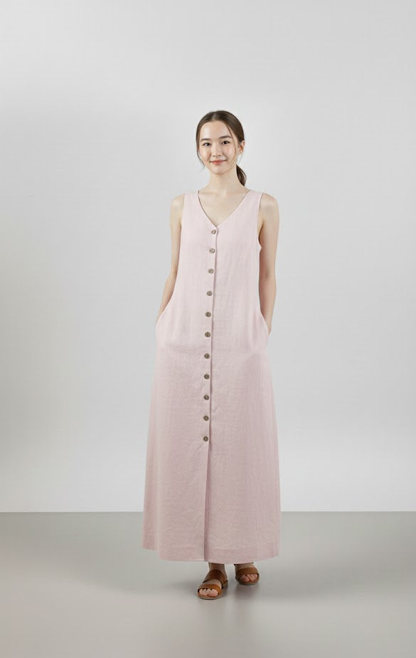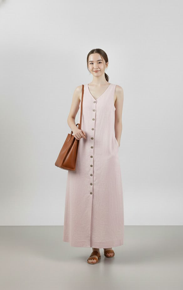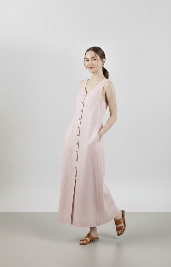 Đầm Lỉnen Tưng Premium - Sát Nách Phối Nút