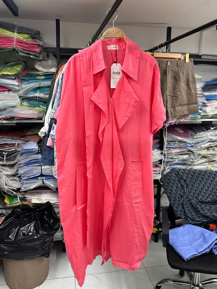 Đầm Linen Tưng Premium - Sơ Mi Phối Bèo