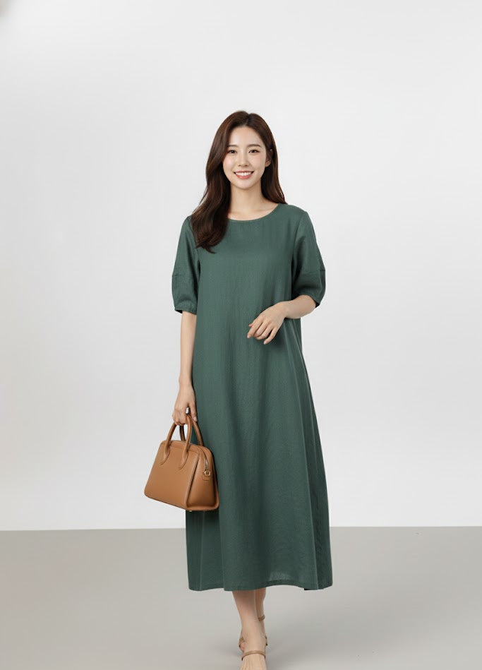 Đầm Linen Tưng Premium - Linen Suông Tay Phồng
