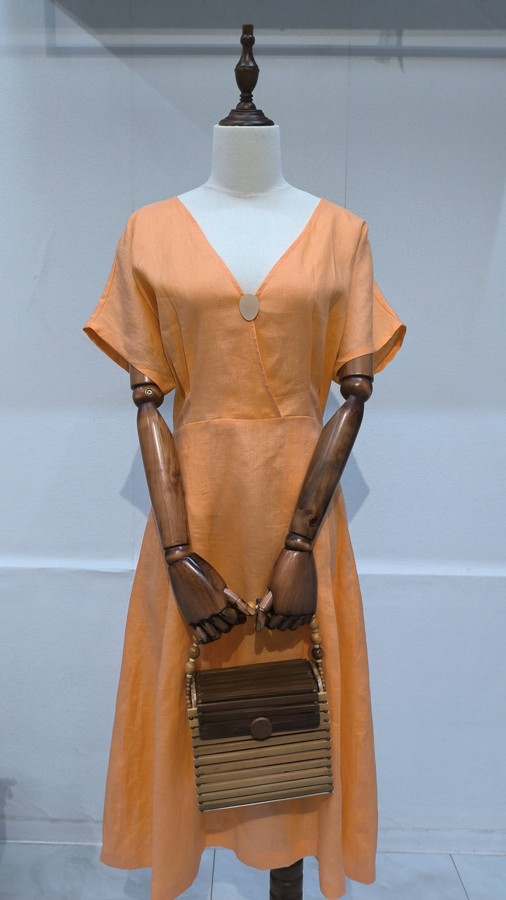 Chất liệu linen cao cấp, mềm mại, thoáng mát, phù hợp mặc cả ngày dài. Đầm dễ dàng phối với giày cao gót, sandal hoặc sneaker, kết hợp cùng túi xách và phụ kiện nhẹ nhàng để hoàn thiện phong cách.