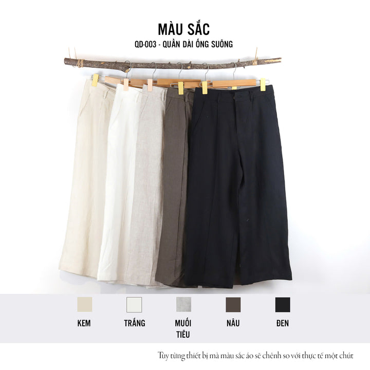 Quần Linen Tưng Premium - Dài Ống Suông là thiết kế tối giản mang nét hiện đại, thanh lịch và thoải mái. Form quần ống suông giúp tôn dáng, dễ phối với nhiều kiểu áo như sơ mi, croptop hoặc áo linen cùng chất. Chất liệu linen tưng cao cấp mềm nhẹ, thoáng mát, thấm hút tốt, phù hợp cho mọi hoạt động thường ngày. Mỗi chi tiết được hoàn thiện tỉ mỉ, tạo nên tổng thể tinh tế và sang trọng – lựa chọn hoàn hảo cho cô nàng yêu sự tự nhiên và phong cách.