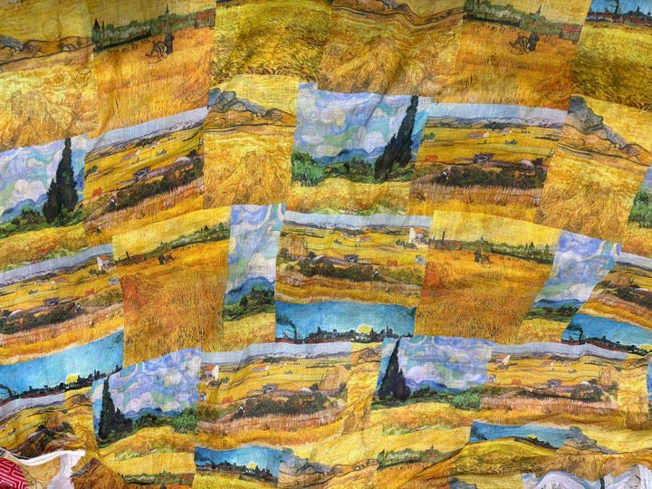 Vải Linen Tơ Bông - Cánh Đồng Lúa: Tuyệt Tác Hội Họa Van Gogh Phong Cách Patchwork