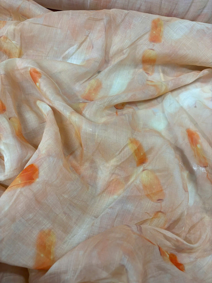 Vải Linen Tơ Bông - Lồng Đèn Cam: Sắc Hè Ấm Áp & Họa Tiết Loang Trừu Tượng